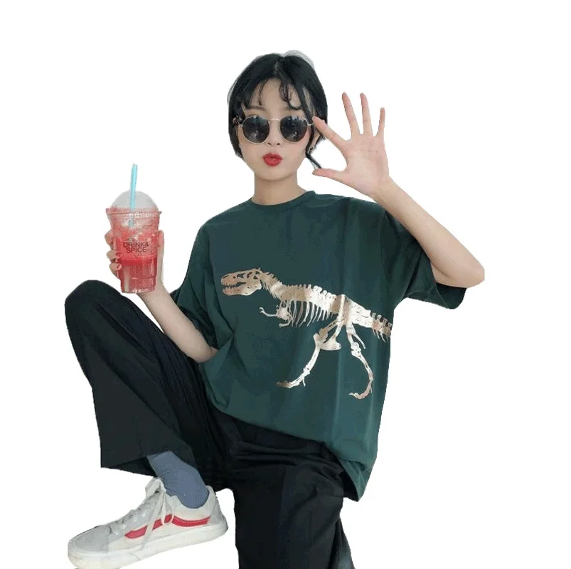 Images of 2018 Summer Harajuku Women's t Shirt Brand New Fashion dinosaur Print Casual Short Sleeve O-Neck Loose t-shirts Tops Plus Size