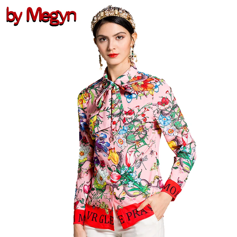Price Description for by Megyn 2018 fashion designer runway women blouses long sleeve shirt snake and letter print women blouses plus size 3xl female