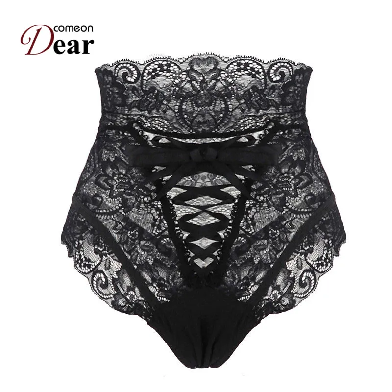 Offer Description for Comeondear Boy Shorts Lace Strappy Open Cortch Plus Size Lace Woman Panties Underwear Black High Waist Ladies Panties PK5139