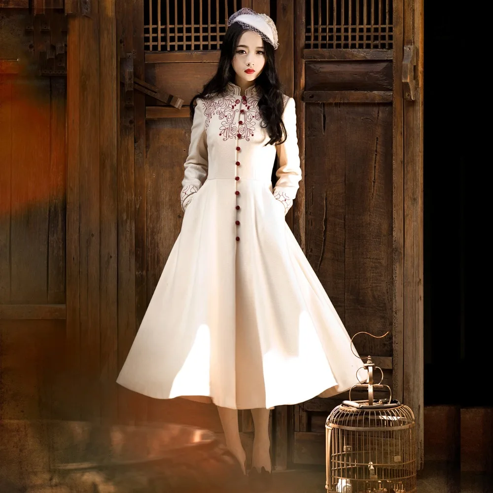 Pictures of 2016 Winter Women Coat Vintage Retro Single Breasted Mandarin Collar Woolen Outerwear Coat
