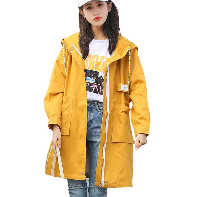 Pictures of Autumn Loosen Long Jacket Women Hooded Windbreaker Women Coat Spring Women Casual Bomber Jacket College Women's Jacket Large