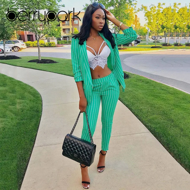 Gallery of BerryPark New 2019 Formal Suit for Women Casual Business Suitspants Work Wear Sets Office Lady Uniform Elegant Stripe Pant Suits