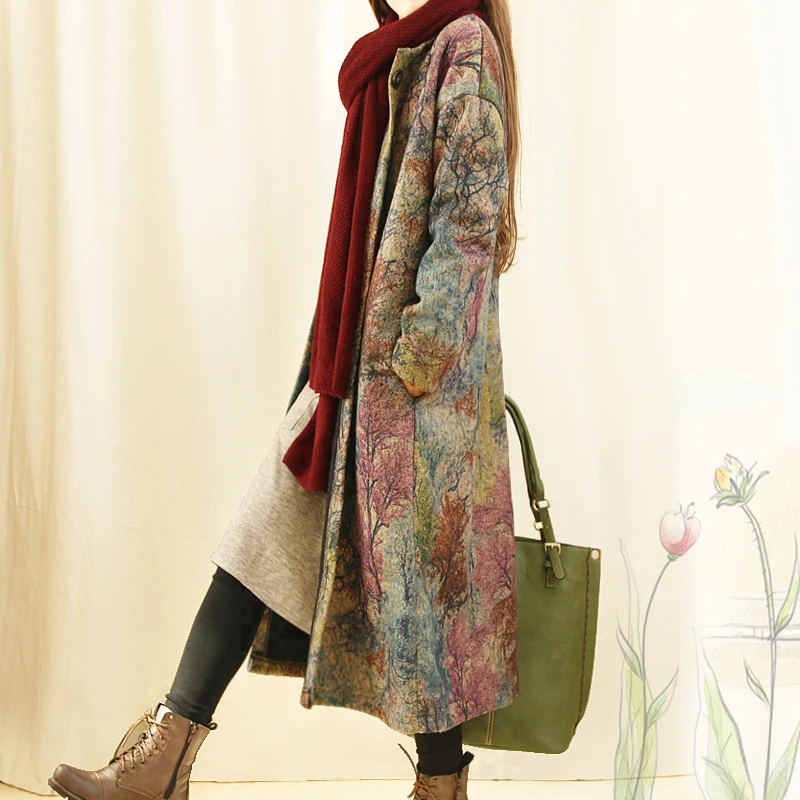If You want to buy for Women Coats, then Coat Women 2019 Spring Autumn Vintage Woolen Outerwear Female Print Thickening Overcoat Loose Trench Casual Long Jackets E15189 may be make you like