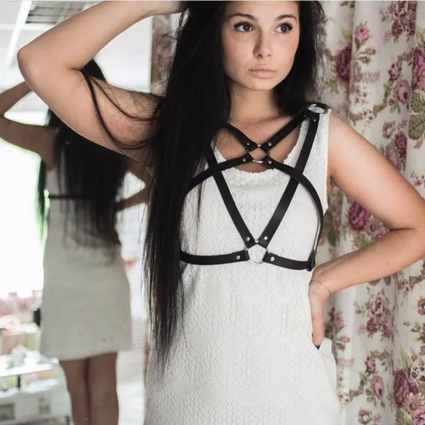 Gallery of Fashion Punk Harajuku O-ring Body harness Garters Faux Leather Bondage Cage Sculpting Harness Belt Straps Suspenders Belt