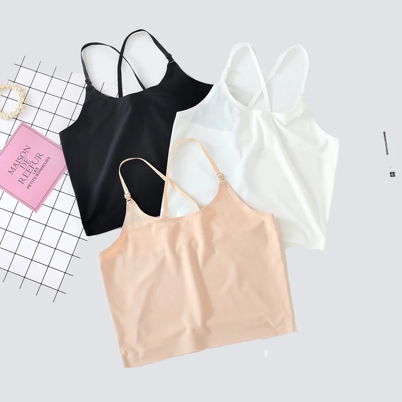 Addition Information of Fashion Strappy Back Women's Modal Seamless One Piece Crop Top, Ice Silk Short Camisole Lingerie Cross Crop Top Low-cut Sun-top