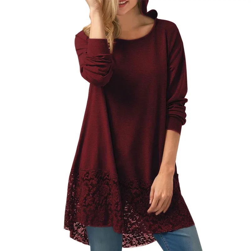 Price Description for Fashion ZANZEA Women Hoodies Long Sleeve Lace Crochet Patchwork Solid Long Pullover Loose Work Shirt Hooded Blouse Plus Size