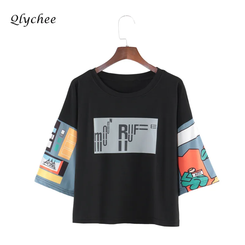 Related Product for Women Shirts and Qlychee Fashion Streetwear Patchwork Print T shirt Women Three Quarter Sleeve O Neck Harajuku Lady Top Tee Spring T-shirt FemaleBOBOKATEER cotton camisetas mujer slim tshirt off shoulder women t shirts women 2018 summer haut femme casual t shirt women tops