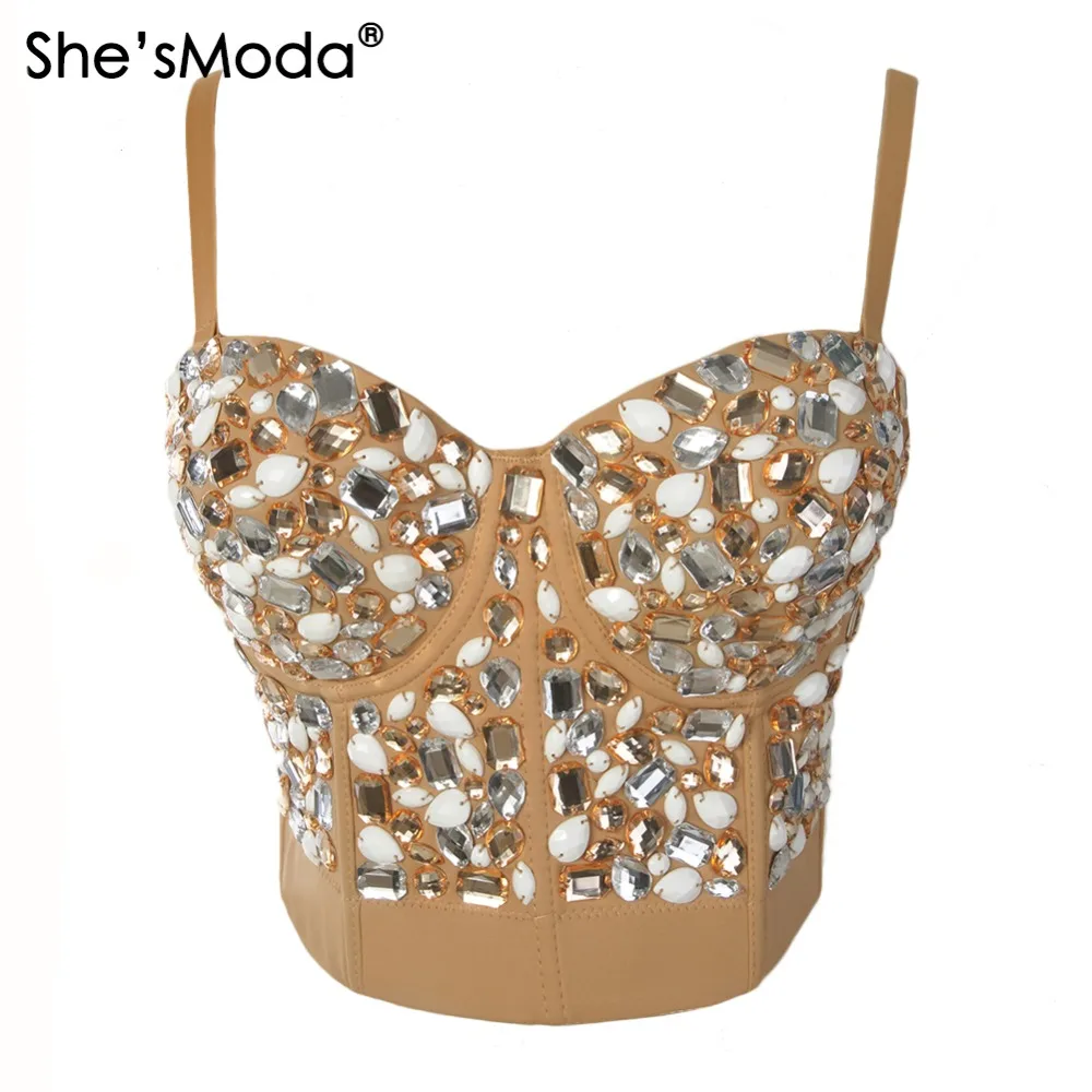If You will buy for Bustiers & Corsets, then She'sModa Khaki Rinestone Hand-made Pearls Bralet Corselets Women's Bustier Bra Cropped Top Wedding Bralette Vest Plus Size is possible make you like