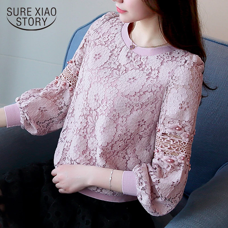Chance Description of 2017 Autumn new fashion casual women lace bottoming shirt round neck loose long-sleeved lace women blouse top blosas 668C 30