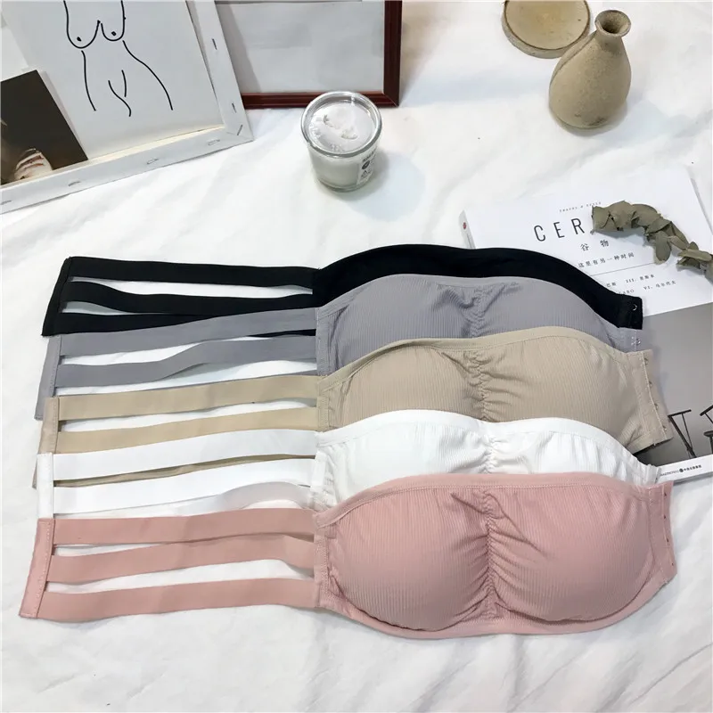 Girls Strapless Bra Women's Stretchy Padded Solid Wrap Tube Top Bandeau Short Tanks Tops With Pads For Female