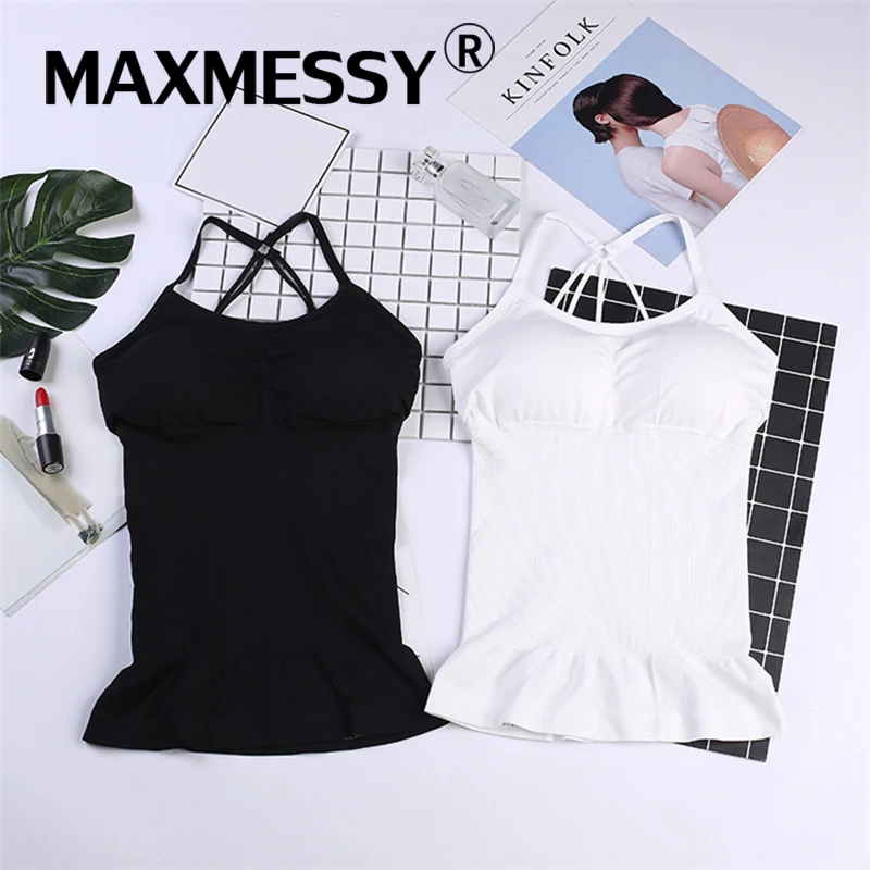 MAXMESSY Sexy Summer Vest Seamless Long Camisole For Women Tank Top Night Sleepwear New Girl Fitness Base Cami B018