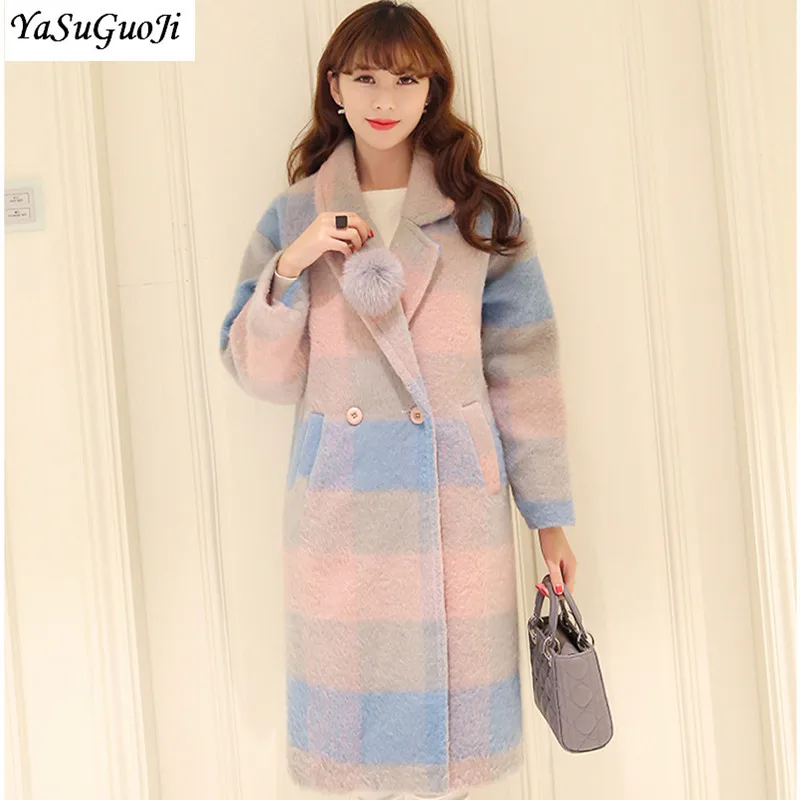 Related Product for Women Coats and New 2017 winter sweet style fashion blue and pink contrast color double breasted plaid woollen coat women doudoune femme NDY242018 New Women long sleeve winter wool coat women Europe style large size casaco feminino ladies new Slim long woolen coats