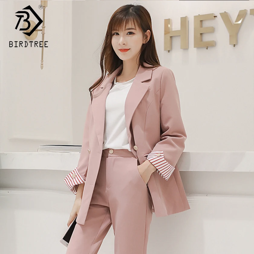 If You search information for Women Suit sets, then New Autumn Winter Women's Pants Suits Blue And Pink Fashion Solid Turn-down Collar Tops And Casual Pants Two Piece Sets S99023L may be make you love