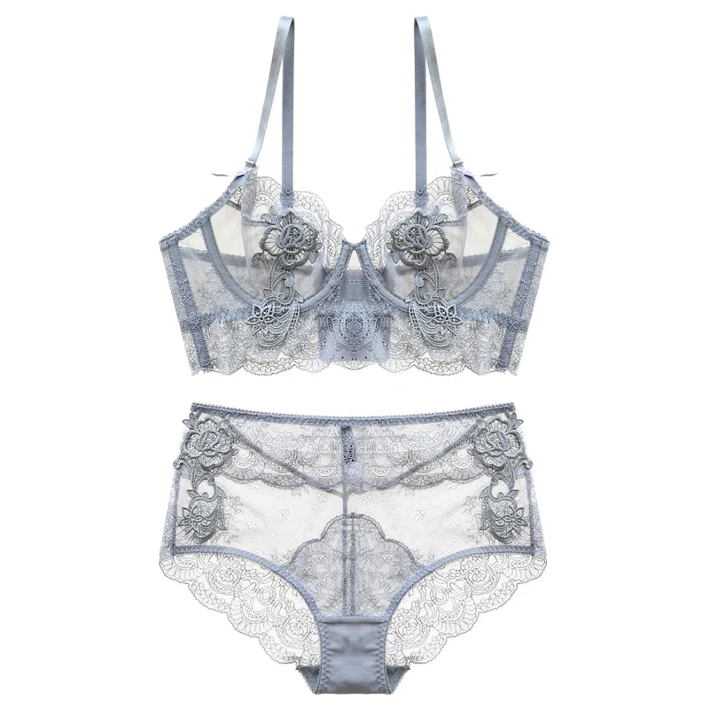 Price Description of New Gather Adjusted Thin Cup Lingerie Bra Set Underwear Transparent Temptation Sexy Bra Set For Women High Waist Bra & Brief Set