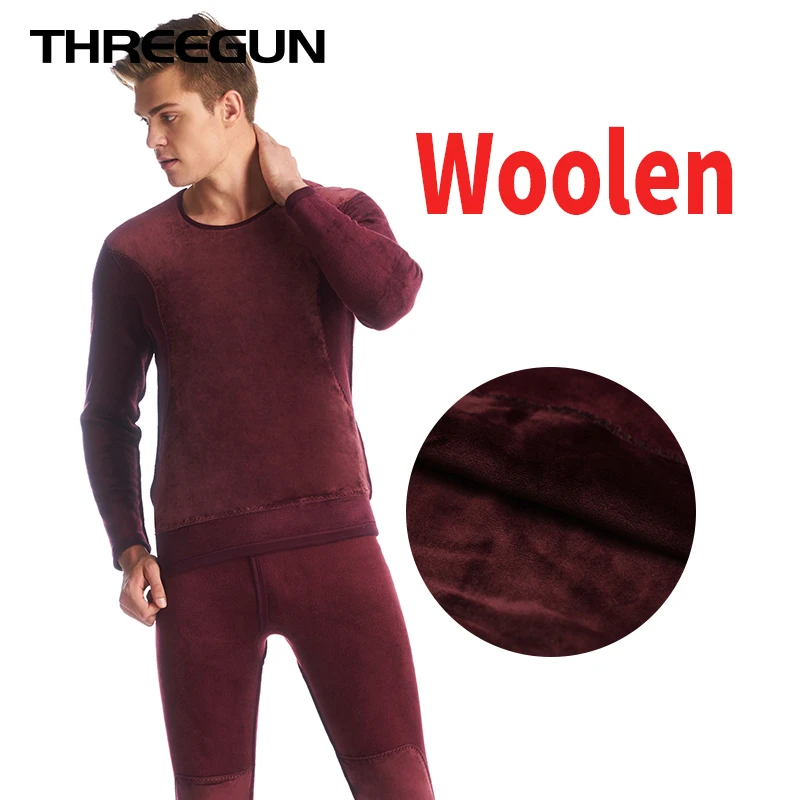 Pictures of THREEGUN Hot Sale Mens Thermal Underwear Set Thick Plus Long Johns Velvet Winter Warm Wool Couple Thermo Underwear Stretch Cloth
