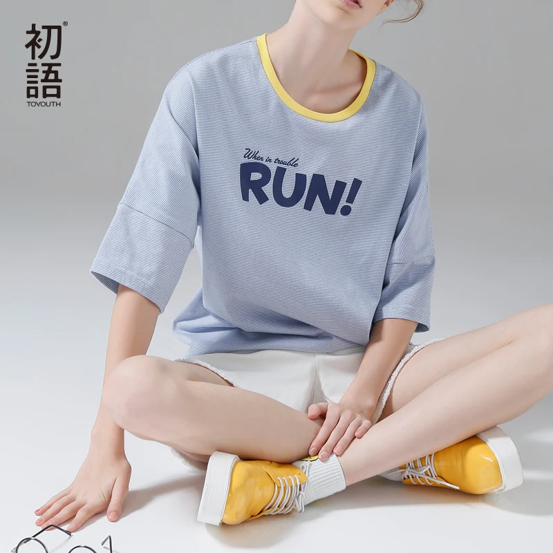 Buy Toyouth Striped T Shirt Women 2018 Summer Hit Color Batwing Half Sleeve T-Shirts Loose Letter Printed Female Tee Camisetas Mujer Right Here and Right Now or before 2019-01-20 and You will save US $14.28 or 42%, Because before price is changed afer 2019-01-20 you will just pay for US $19.72, not in Reguler Price at US $34.00. Yap! This is I mean you will Save 42% / US $14.28