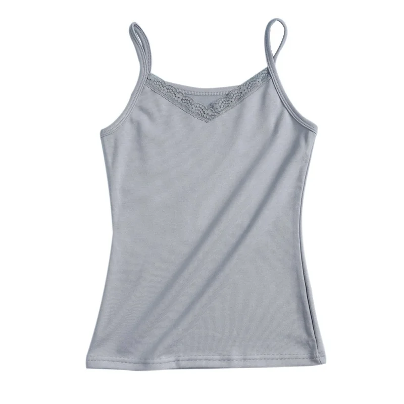 Gallery for Women's Sexy Lingerie Breathable Plus Size Heating Warm Slim Lace V-Neck Solid Color Camisole Top