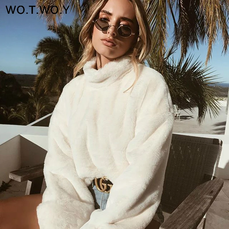 Chance Description of WOTWOY Thick Lambswool Winter Jacket Women Faux Fur Wool Coats Women Outerwear Warm Back Zippers Crop Teddy Jackets Women 2018